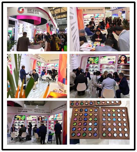 2019年11月18-20號在上海舉行,此次展會非常成功,攜帶化妝品級,耐溶劑等多種金蔥粉趕赴上海參展。得到世界各地人士的認可和支持。